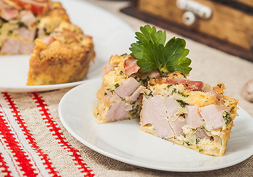 V niektorých regiónoch nazývaná aj „paska“, či „slepé kura“, podobná svojou výrobou plnke do kurčaťa. Upečená z údeného bravčového mäska, domácej klobásy, údenej slaniny zmiešané žemľami poliatymi mäsovým vývarom a vyšľahanými vajciami. Dochutené mletým čiernym korením a soľou.