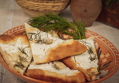 Vhodný k mliečnej polievke. Pečivo z kysnutého cesta, pečené v rúre na 190 °C, mierne pretreté olejom so smotanou a kôprom alebo cesnakom.